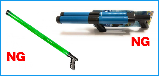 下記のタイプの筒状大型水鉄砲については会場内の安全性の観点から持ち込み禁止とさせていただいております。